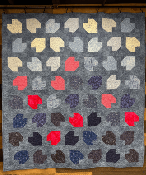 A 60" x 66" throw with 56 tumbling hearts - perfect first Studio project that shows how clear guidance eliminates overwhelm: